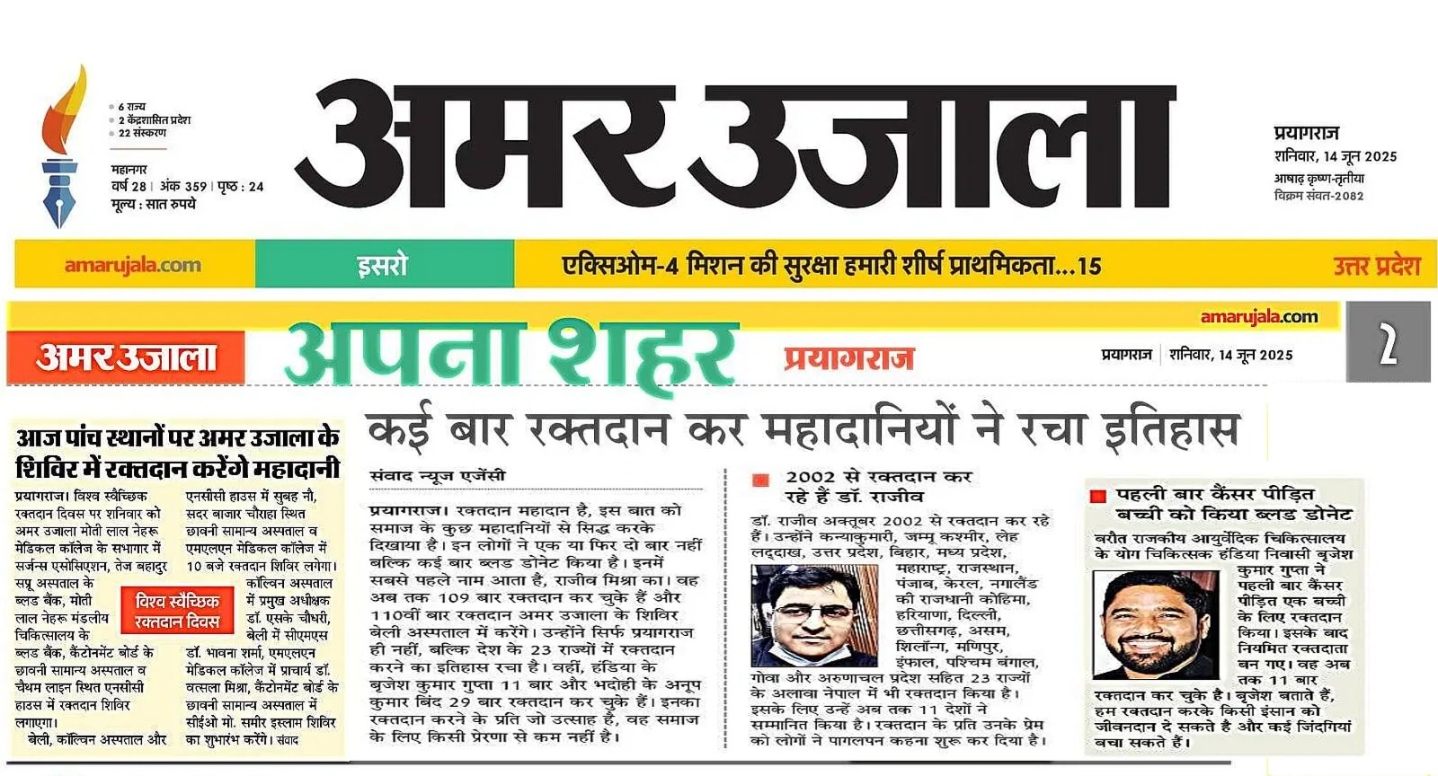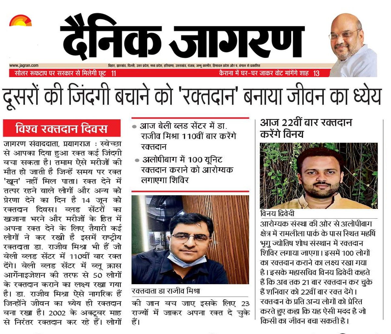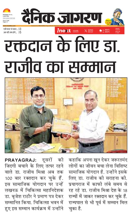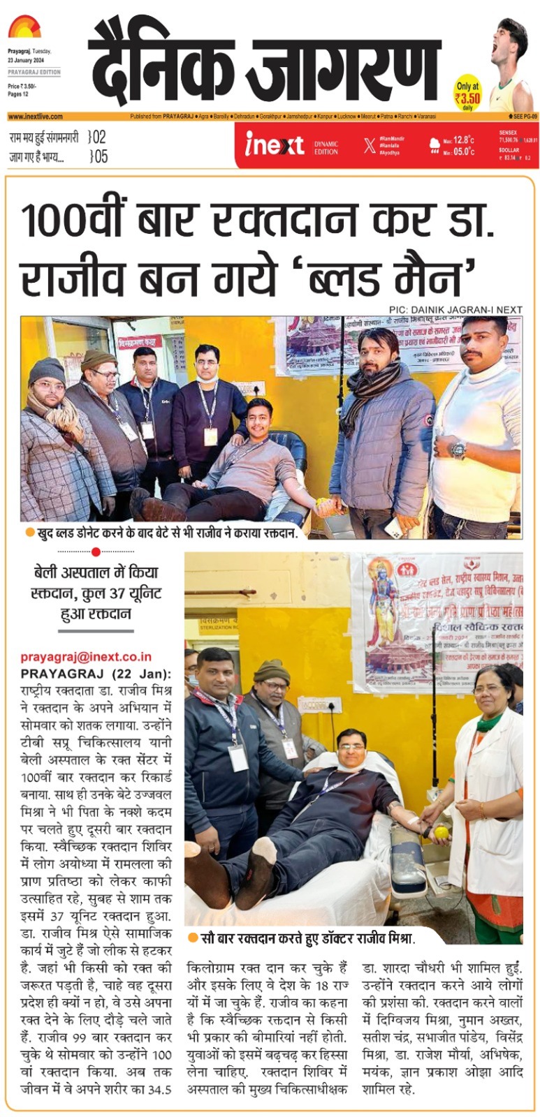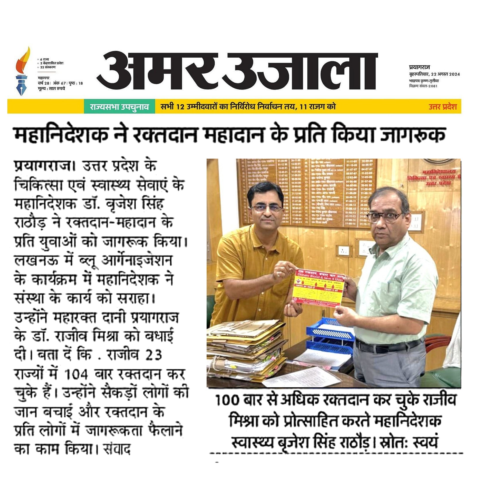 राष्ट्रीय रक्तदाता डॉ राजीव मिश्रा जिन्होंने रक्तदान और रक्तदान के प्रति जागरूकता हेतु देश के विभिन्न राज्यों में जैसे जम्मू कश्मीर,लेह लद्दाख, पंजाब,उत्तराखंड, हरियाणा, दिल्ली, उत्तर प्रदेश, बिहार,असम,नागालैंड की राजधानी कोहिमा, छत्तीसगढ़, कर्नाटक, गोवा, महाराष्ट्र, मध्य प्रदेश, भोपाल,राजस्थान के साथ-साथ महात्मा बुद्ध की जन्मस्थली लुंबिनी में जाकर रक्तदान करके देश और समाज युवाओं को रक्तदान के प्रति जागरूक करने का काम किया है! डॉ राजीव मिश्रा सभी त्योहार जैसे दिवाली, होली, दशहरा, नवरात्रि, 15 अगस्त,26 जनवरी, गांधी जयंती, के साथ-साथ अपना जन्मदिन भी अनाथालय में ही मानते हैं