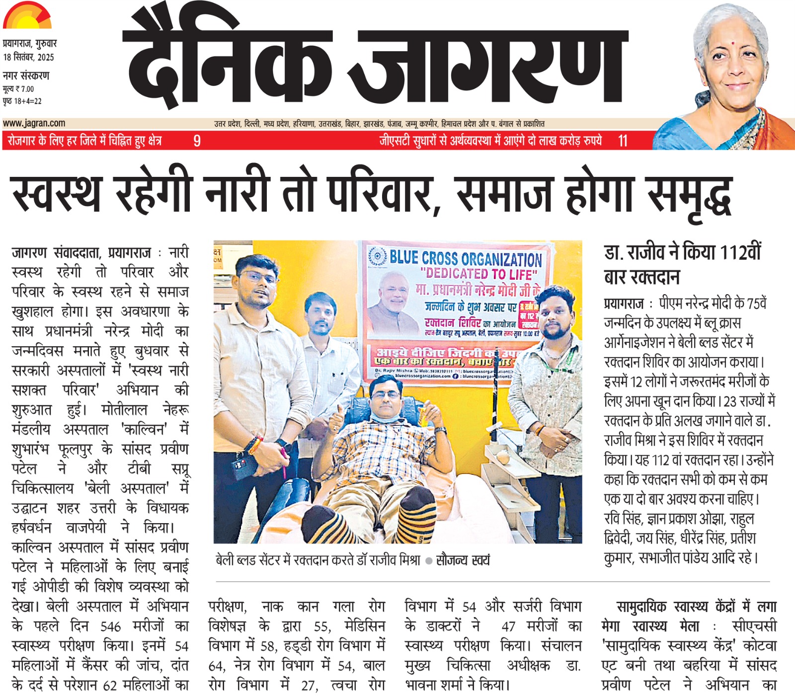 Blue Cross Organization की स्थापना डॉ० राजीव मिश्रा ने 1999 में किया ,इस संस्था के माध्यम से देश और समाज के युवाओं को रक्तदान के प्रति जागरूक करने का काम किया है ..अब डॉक्टर राजीव मिश्रा को ब्लड मैंन ऑफ इंडिया के नाम से जाने जाना लगा है . राजीव का मानना है कि सभी लोगों को अपने काम के साथ-साथ समाज को लेकर चलना चाहिए. हमें उन लोगों को उठने में और साथ चलने में मदद करनी चाहिए, जिन्हे हमारे मदद की ज़रूरत है. समाज के ज़रूरतमंद लोगों को खाना खिलाना और उनका ध्यान रखना हमारा फ़र्ज़ है.